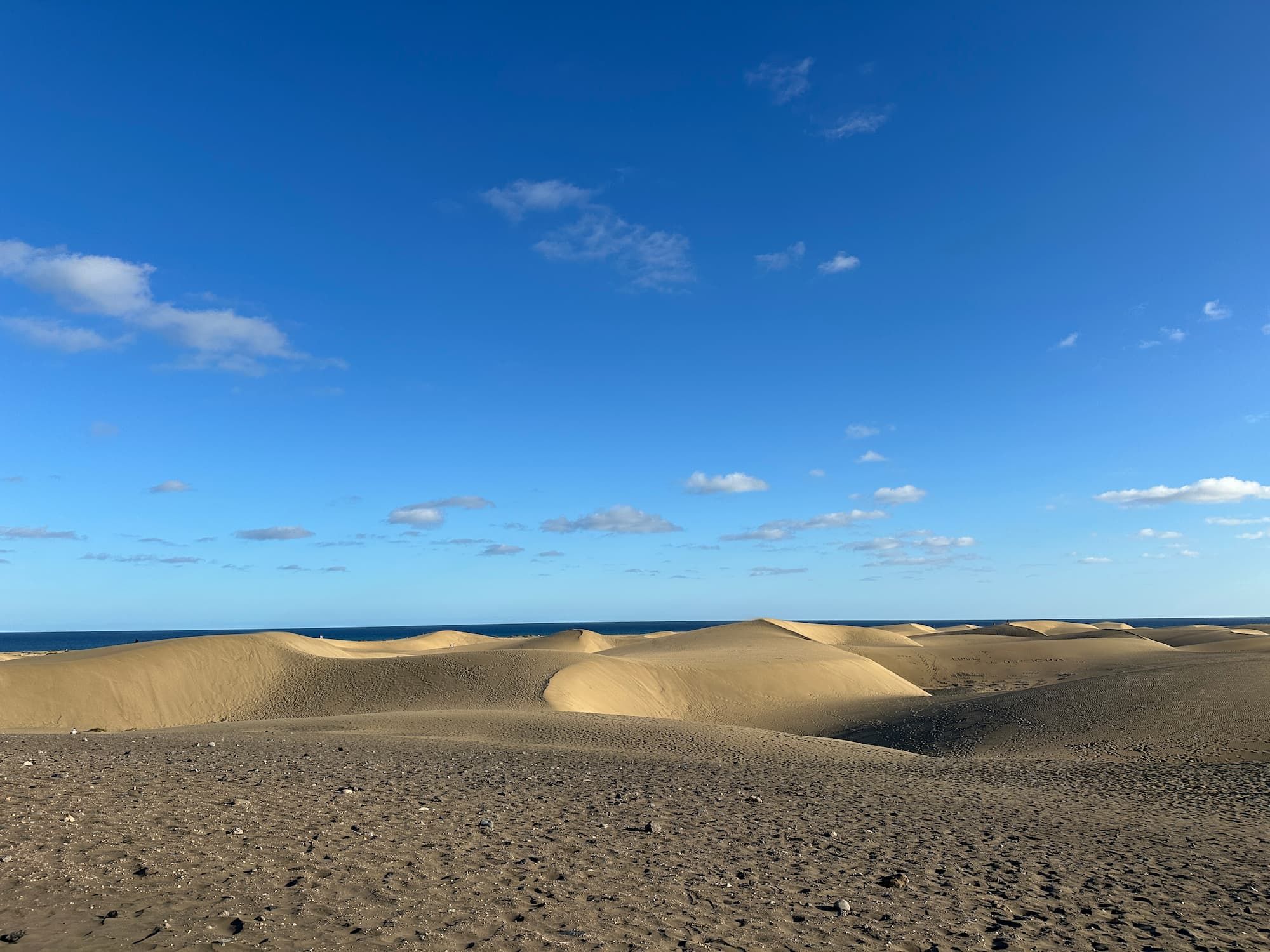 Scesi dalla barca ci siamo diretti subito al nostro alloggio in zona Arguineguìn e, una volta lasciati i bagagli, verso le dune di Maspalomas, uno dei paesaggi più iconici di Gran Canaria. Si tratta di vere e proprie dune in cui sembra di essere nel deserto, ma che affacciano sul mare. Solo un piccolo appunto: è espressamente vietato camminare SOPRA le dune e c’è un percorso prestabilito da seguire, anche se tutti ignorano questa regola vi pregherei di iniziare a dare una svolta al turismo sostenibile ed evitare di seguire una massa di persone davvero irrispettose e maleducate.